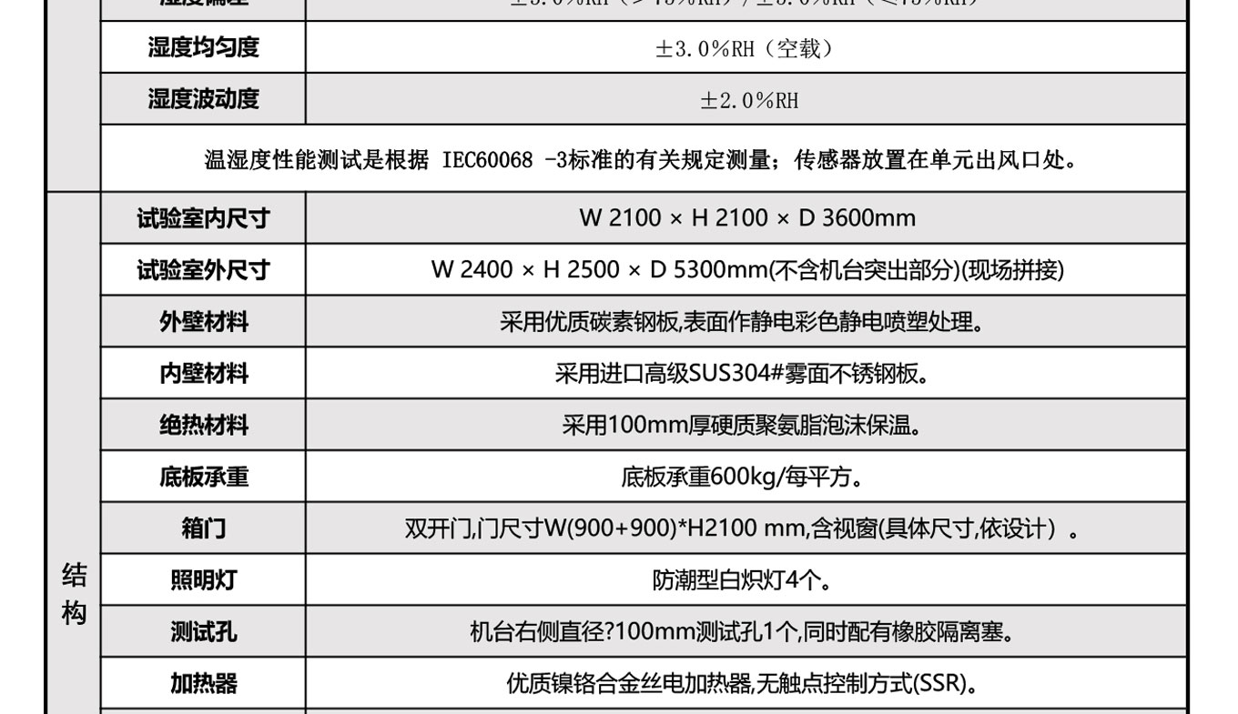 内箱尺寸:W 2100 × H 2100 × D 3600mm
