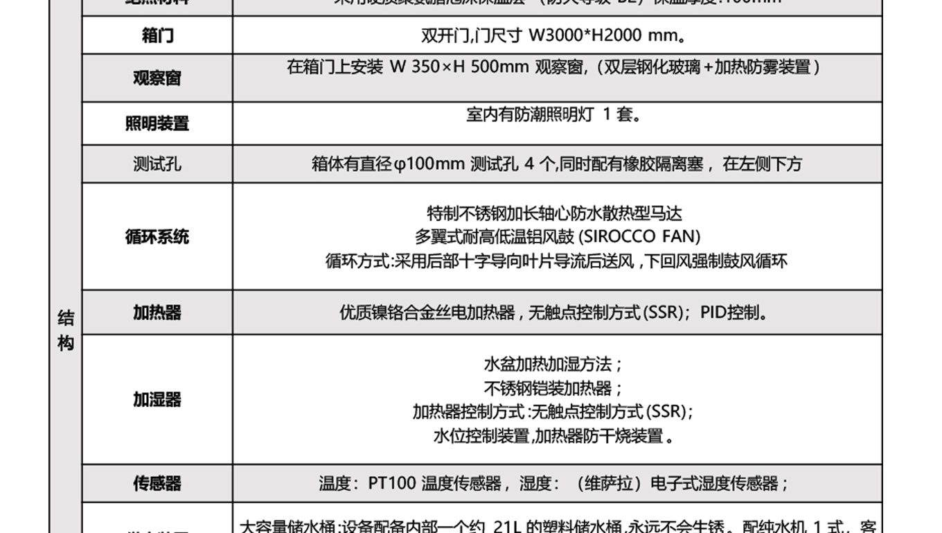步入式恒温恒湿试验箱,,专为大型试件高温、低温、恒定湿热及交变湿热试验设计,提供常见内容积为2.5m³、6.6m³、8m³、12.5m³、20m³、25m³、46m³、84m³和300m³的产品以及安装施工方案。广泛应用于航空航天、国防军工、汽车机电、信息通讯、能源材料等行业批量及大件样品环境试验。