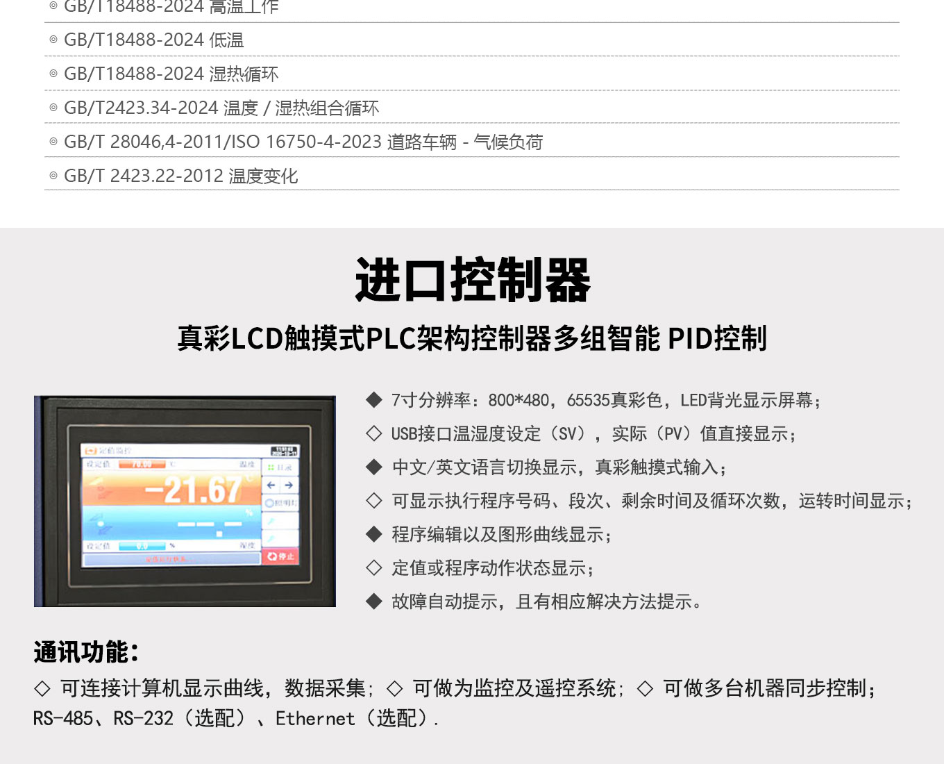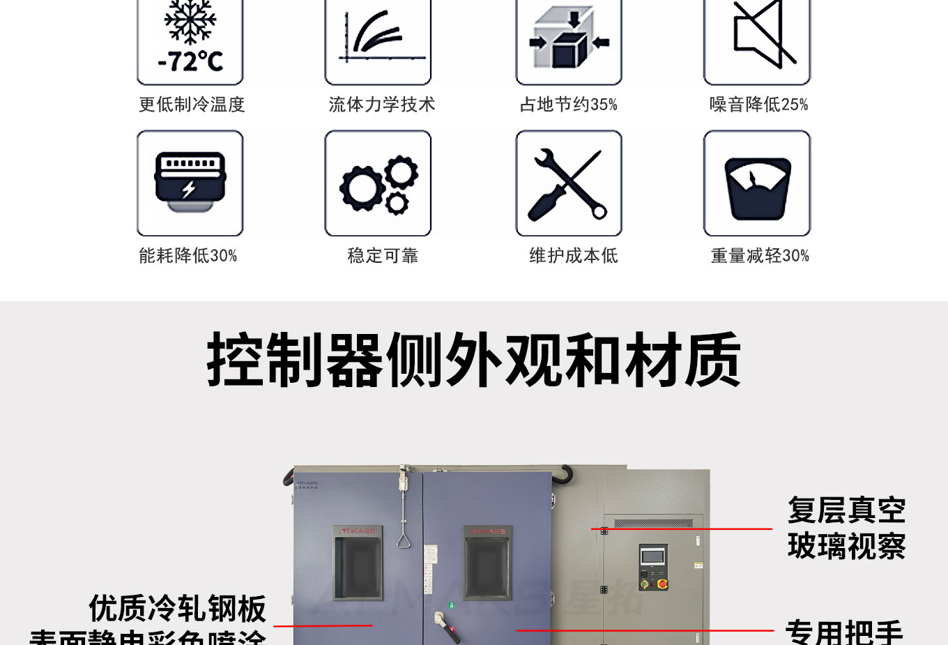 步入式恒温恒湿试验箱,用于模拟高温环境对测试件温度应力测试,温湿度老化测试,性能测试,耐候测试,温度类存储测试等。自主研发高性能控制器:精准控温,功能全面,界面友好。节能降噪:基于流体力学仿真设计优化风道系统,风路循环更合理,灵活可靠的制冷系统设计,兼顾特殊温湿度点和常用实验点,设备运行处于最节能、低噪音状态。