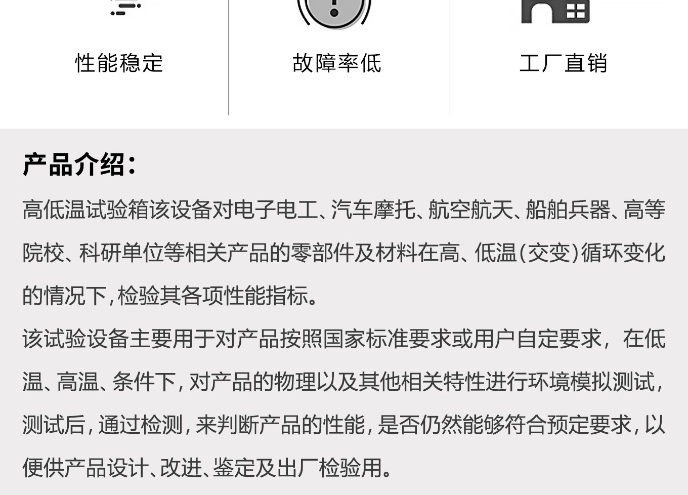 高低温试验箱,又称高低温实验箱、高低温交变试验箱、高低温箱,适用于对电工、电子及其他产品、零部件及材料进行高温或低温试验,以及高低温循环试验的环境试验箱设备,星拓高低温试验箱设计符合GB国标技术标准《GB/T 10592-2008 高低温试验箱技术条件》