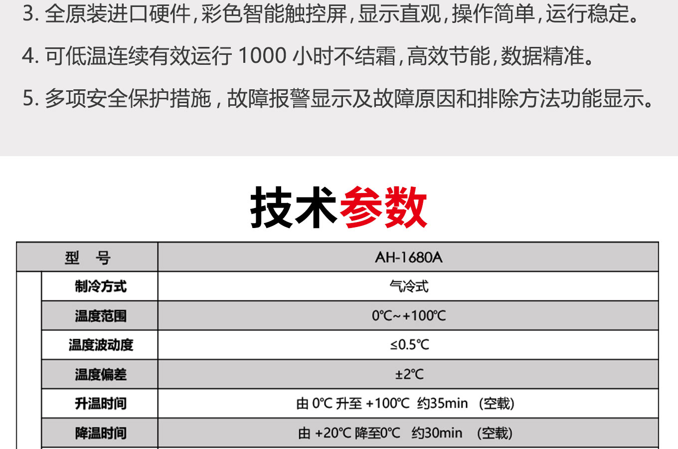 降温时间:由 +20℃ 降至0℃ 约30min (空载)