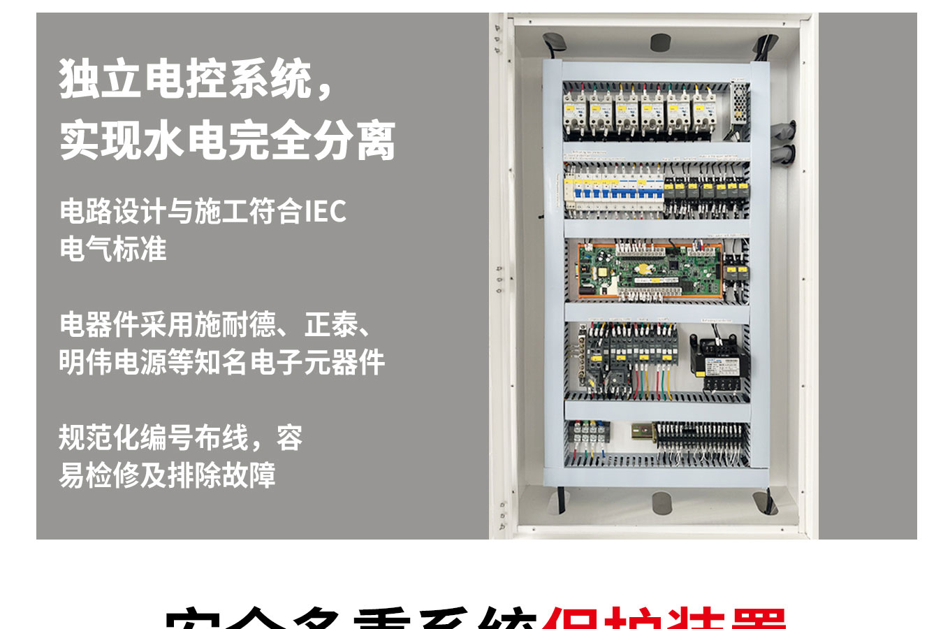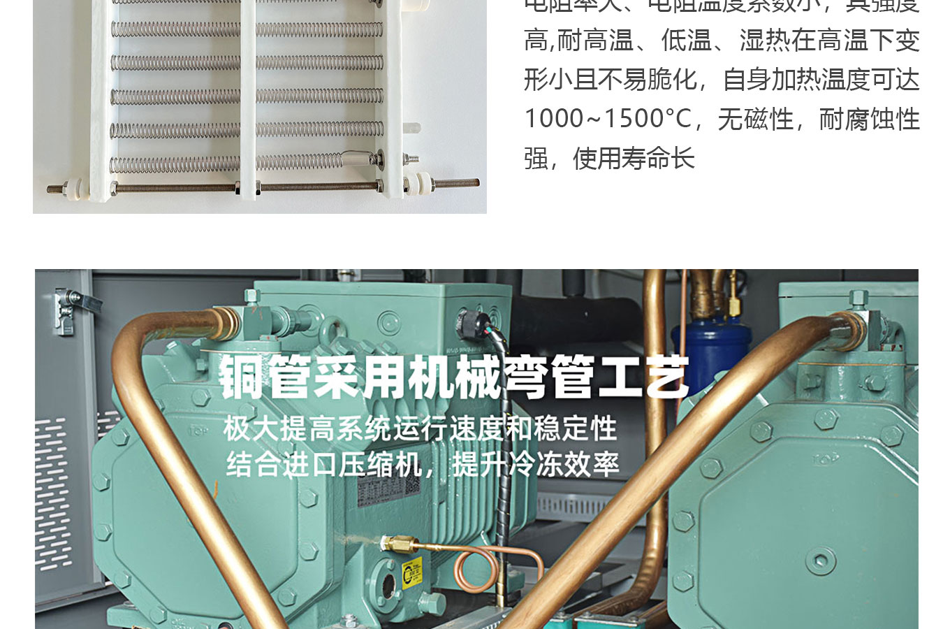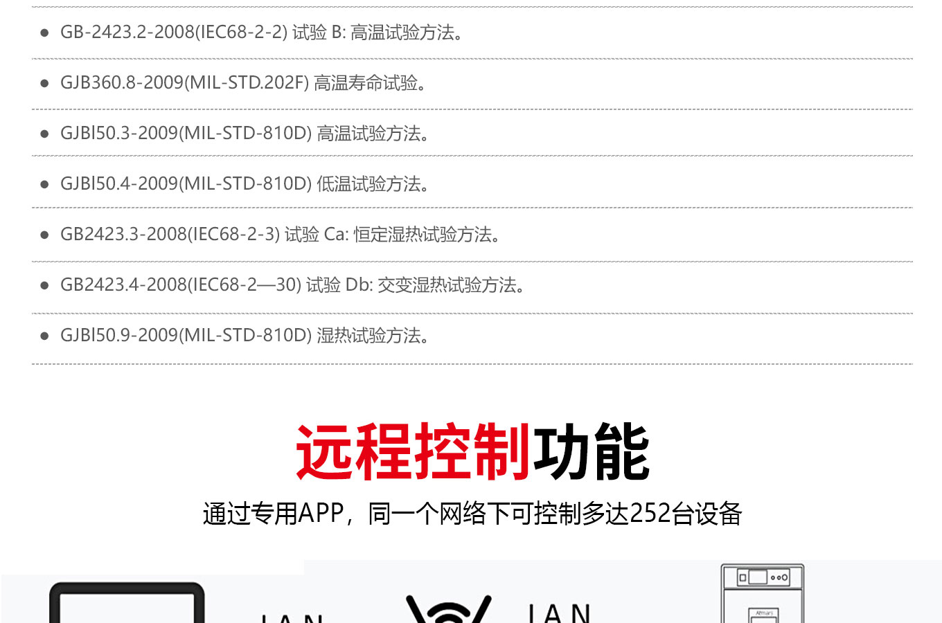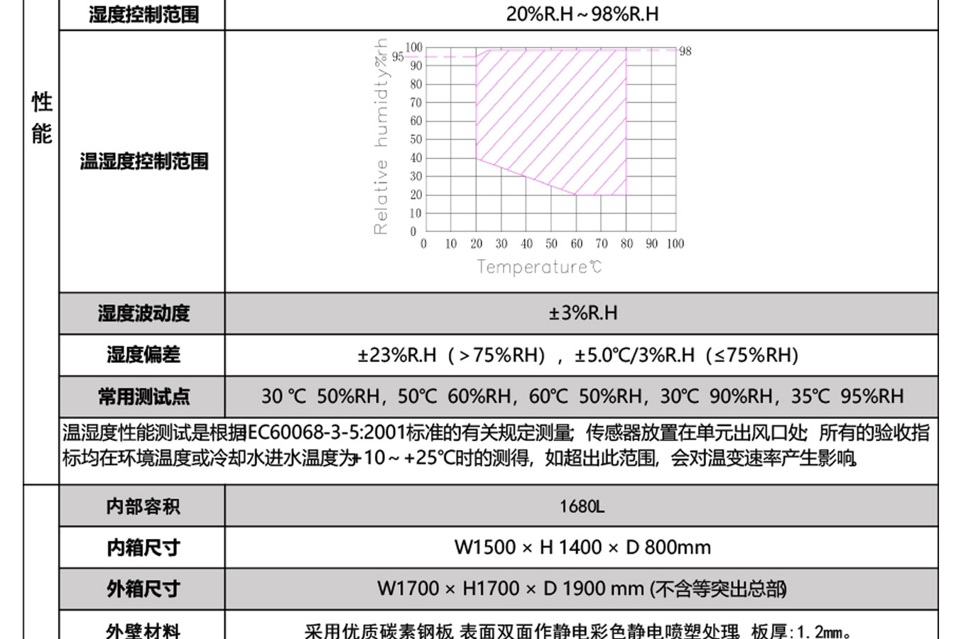 1.整体成型,一体机,试验箱由三部分组成:保温主箱体、独立的制冷机组、电器控制柜组成。 2.最新优化设计,使用大视窗观察窗口,试验产品状态可视化更强。 3.全原装进口硬件,彩色智能触控屏,显示直观,操作简单,运行稳定。 4.可低温连续有效运行1000小时不结霜,高效节能,数据精准。 5.多项安全保护措施,故障报警显示及故障原因和排除方法功能显示。