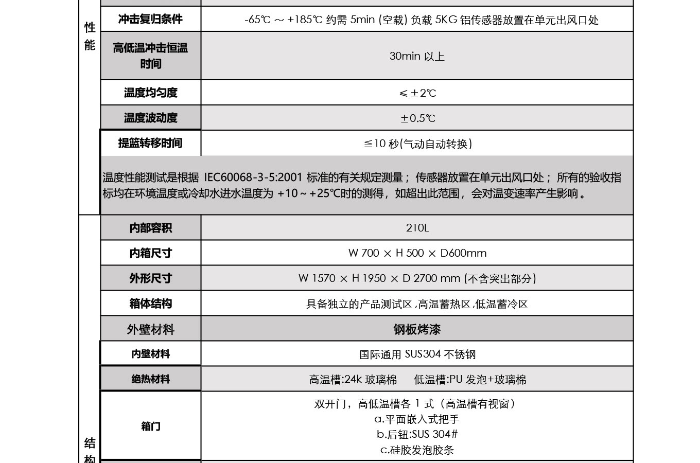 两槽式冷热冲击试验箱,又称高低温冲击试验箱、冷热冲击试验箱、冷热冲击试验机,适用于对电工、电子及其他产品、零部件及材料进行高低温温度冷热冲击试验的环境试验箱设备,可满足电工电子产品及军用设备等环境试验 - 高温试验/低温试验/温度变化试验/高低温冲击试验/温度冲击试验/冷热冲击试验。